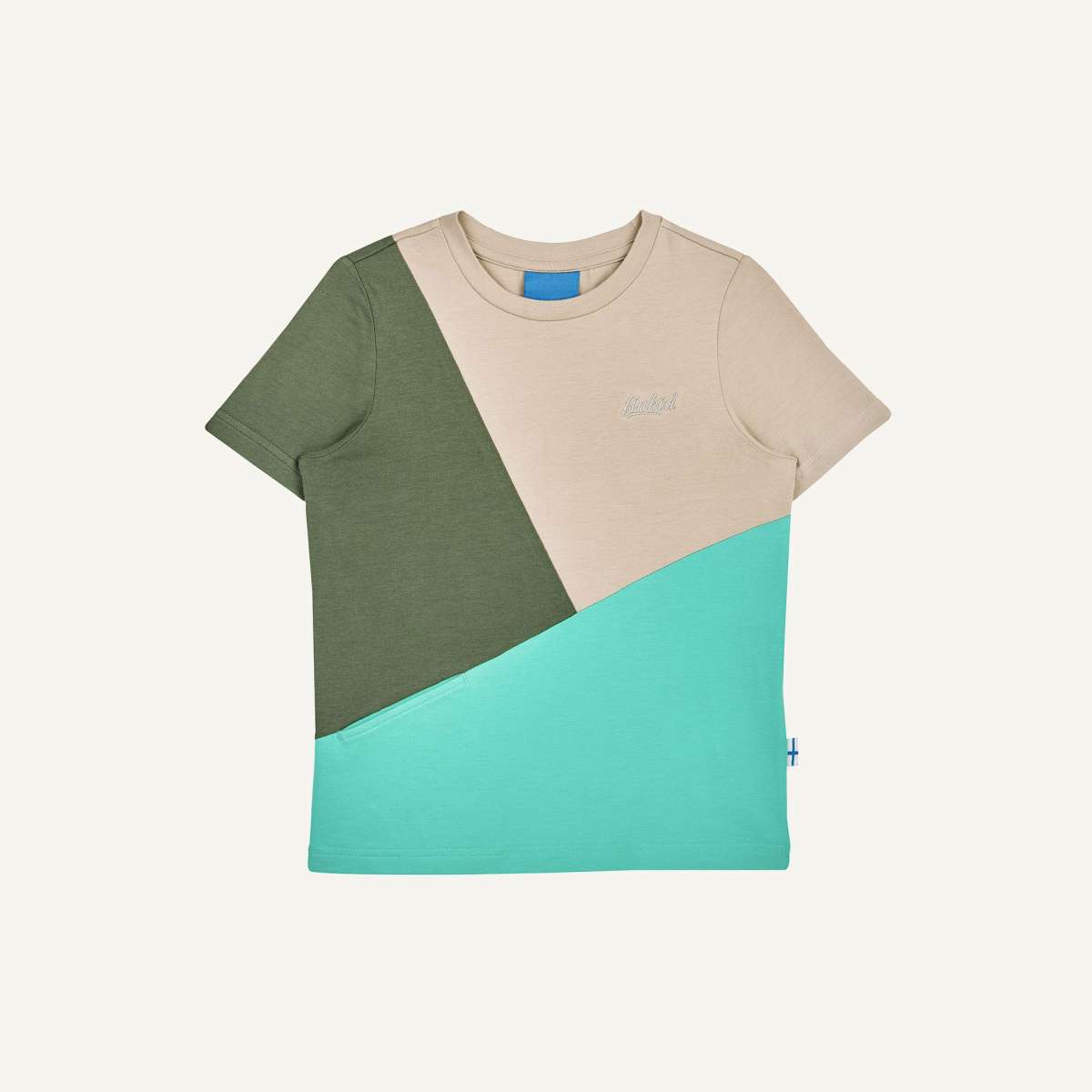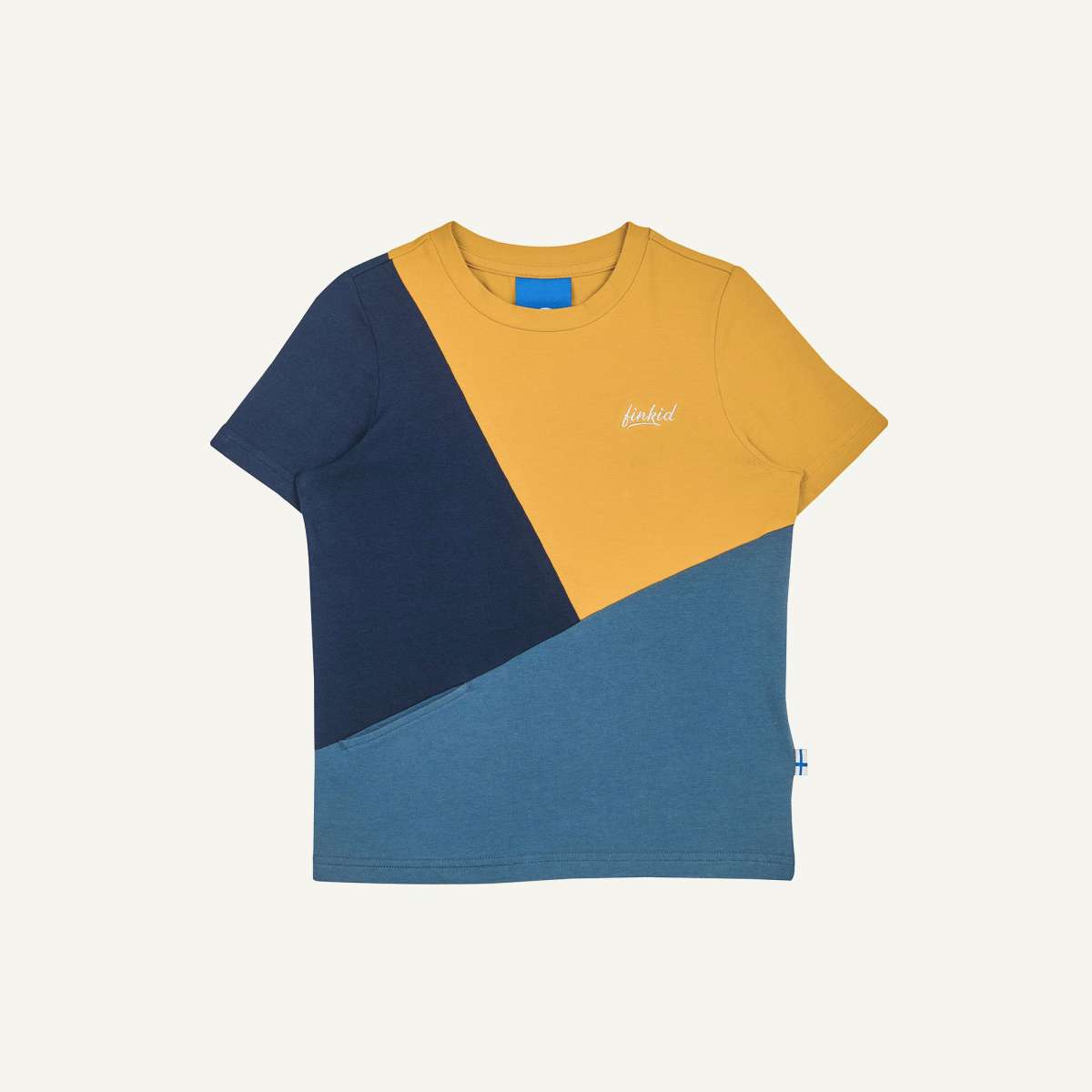 1, 2, 3, ANKKURI is there. This color-blocked jersey short-sleeved shirt not only looks great with its striking color mix, but also impresses with its organic cotton and SPF 50+. Typical finkid®: The small pocket on the front.