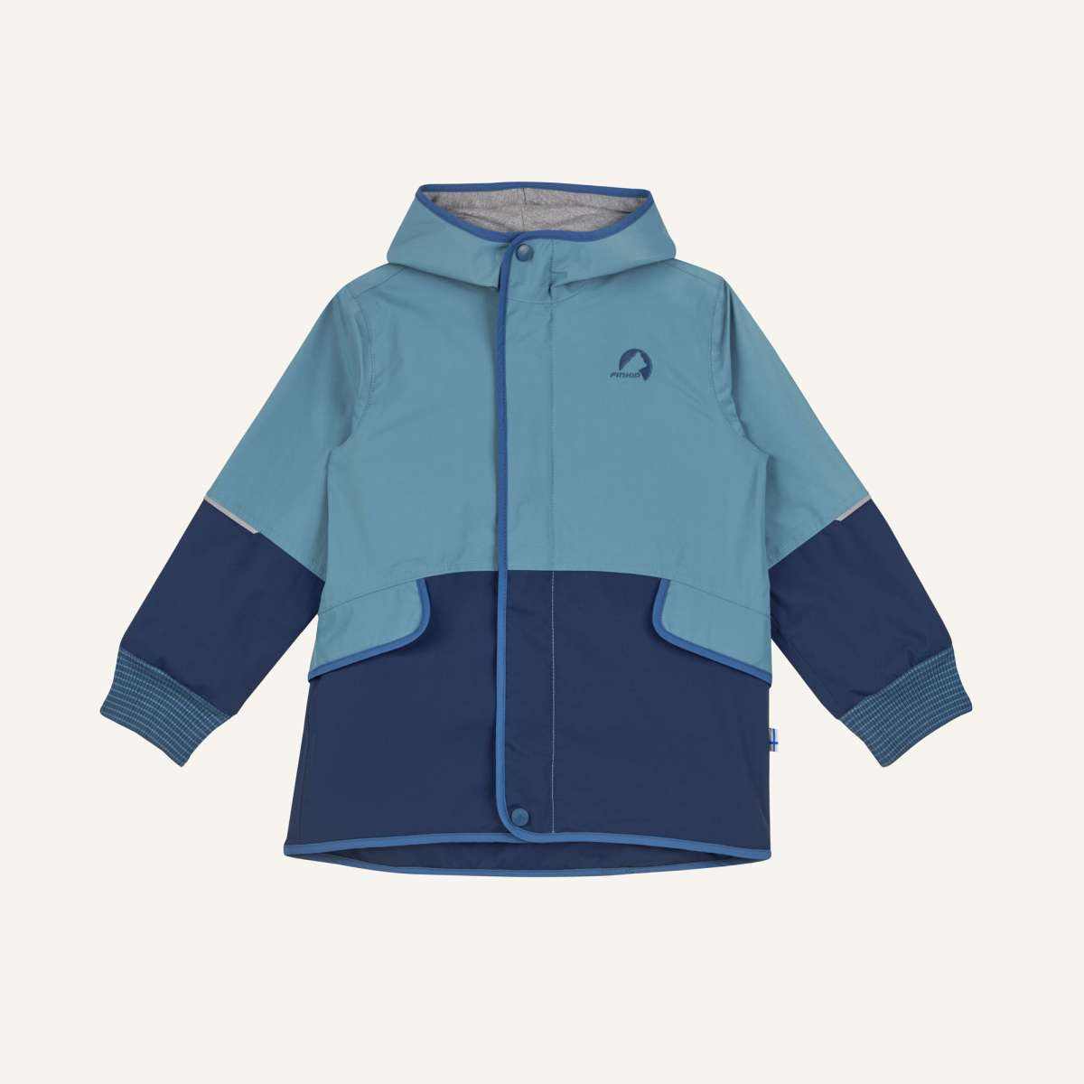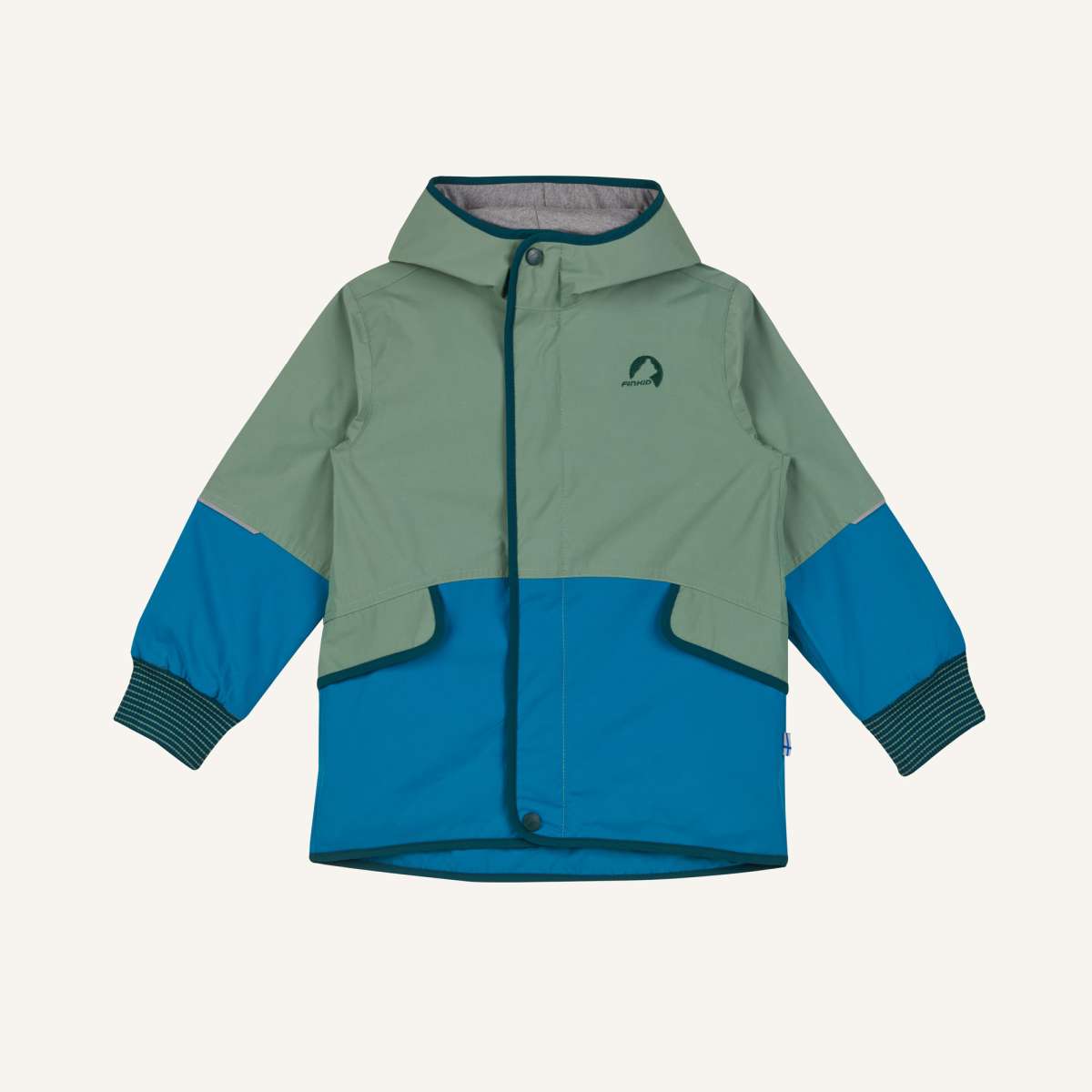 Spring, summer, fall, and winter – but what do you actually wear between the seasons? The transitional jacket. MOSKA protects children from rain, dirt, and wind when it's not quite warm but not quite cold yet. Available in sizes 120/130 and up, it has a round hood.