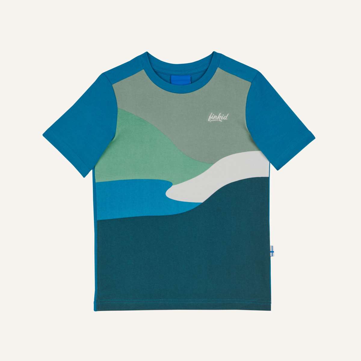 Strikingly different. TANSSI is a jersey short-sleeved shirt with a colorful landscape print – perfect for kids who love to dream about it. Made from eco-friendly organic cotton, the multicolored print is a real eye-catcher and will make your child stand out in a crowd. This shirt, with its colorful design, is for kids who love to romp around and be carefree.