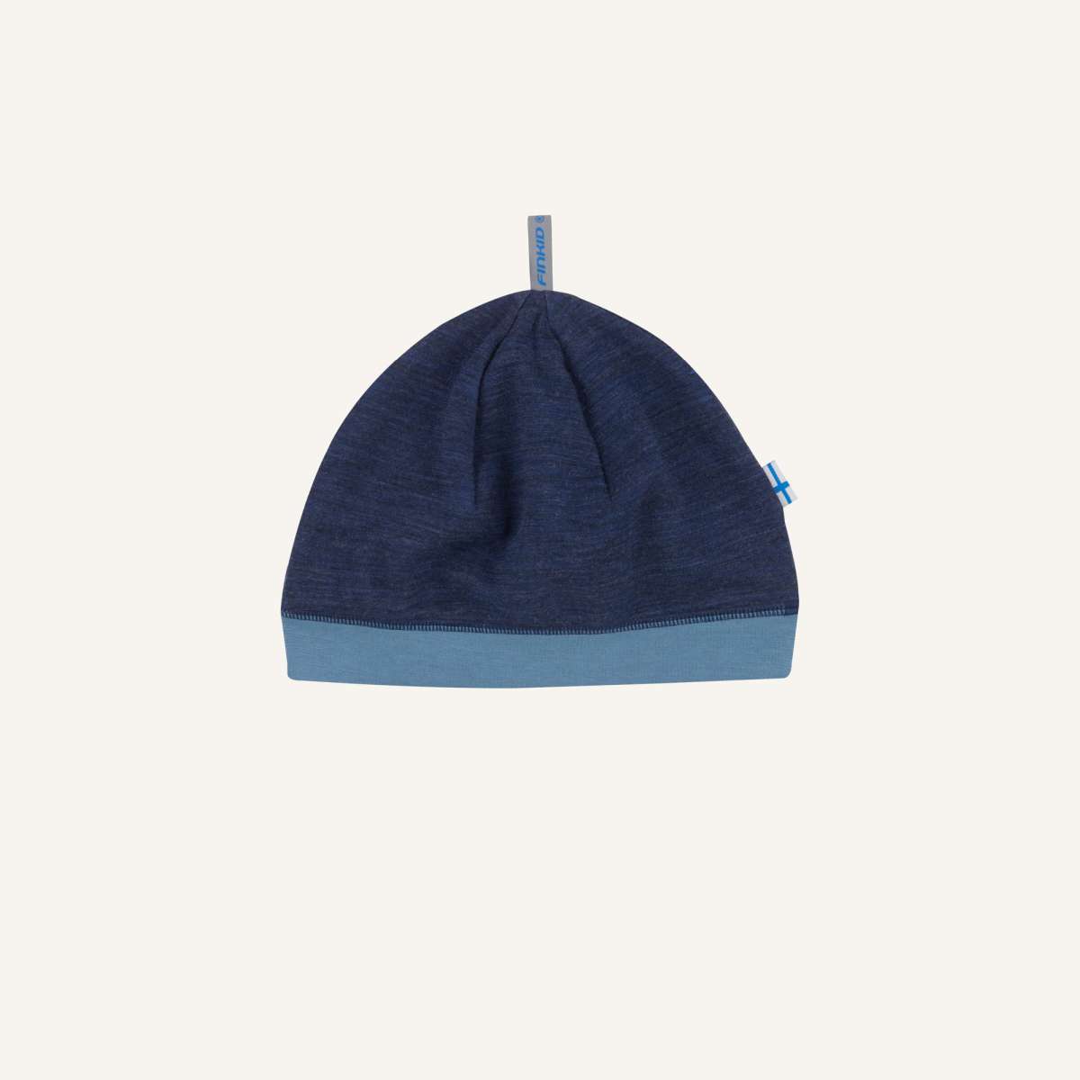 It's all in the mix. With our hat made of lightweight wool jersey, we provide a high-quality layer that skillfully regulates heat around the head. The fine cuff ensures a secure fit on the child's head, preventing it from slipping or pinching.
