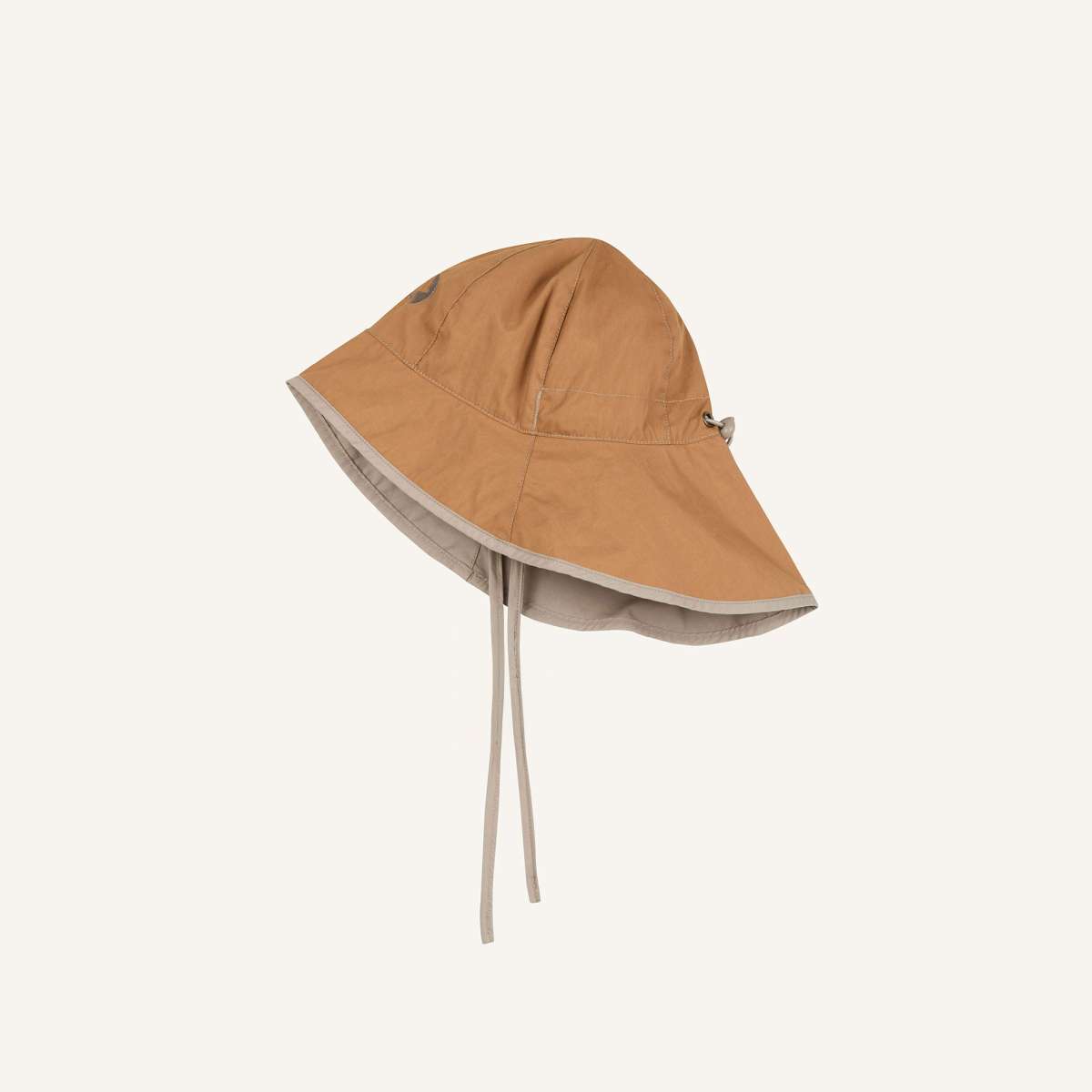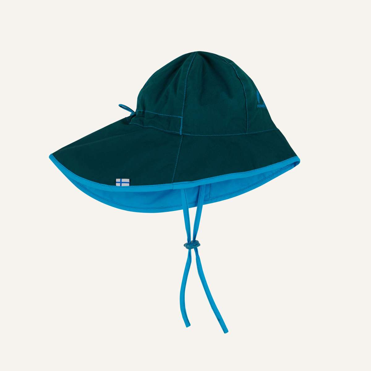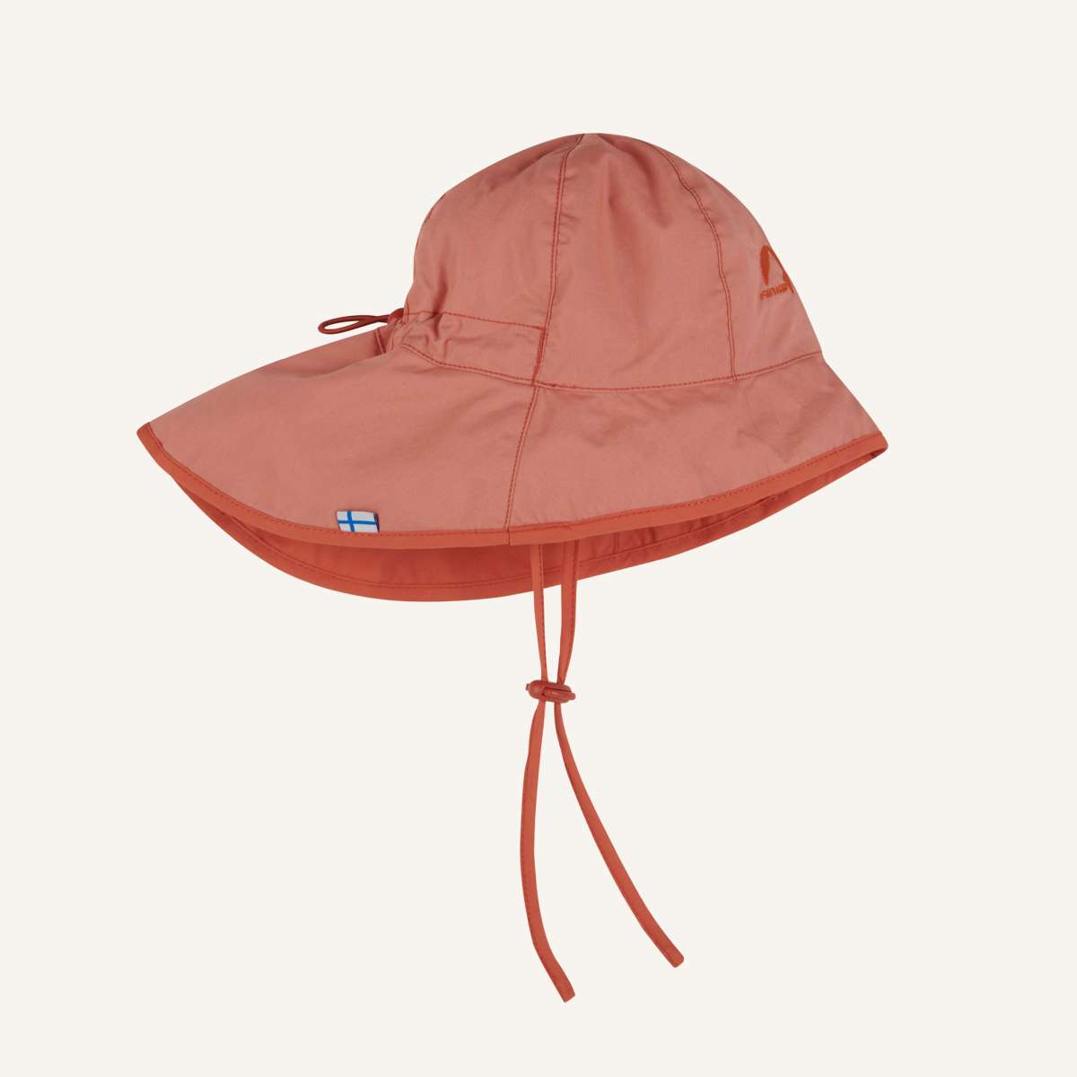 Recommended by beach builders and mud dam engineers, the lightweight RANTA SPORT sou'wester with its extended brim is made of soft, quick-drying functional cotton fabric and lined with cotton. A drawstring with a stopper allows for adjustable width. A summer safety helmet that wicks sun and rain away from the neck.