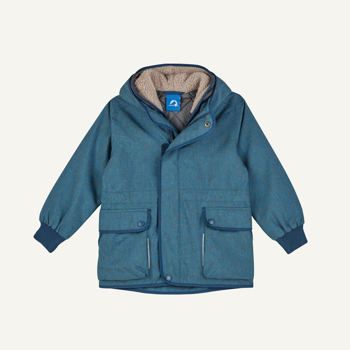 RANUA is a versatile 2-in-1 outdoor parka for children with a removable quilted lining, offering optimal protection in changeable weather. The waterproof, windproof, and insulating material keeps them pleasantly warm, while the water- and dirt-repellent surface ensures carefree play. Reflective details in an animal print increase visibility in the dark – perfect for active children in fall and winter. From finkid®.