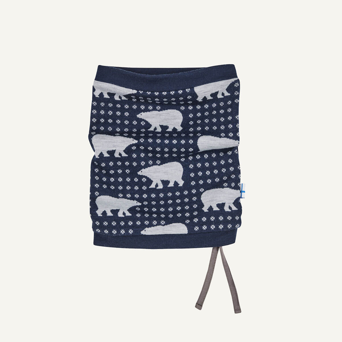 TUUBI NORDIK is a cozy tube scarf for children with a cute bear pattern – perfect for cold days. The scarf is made of breathable and heat-insulating wool that reliably protects against wind and cold. Softly lined with cotton jersey, comfortable, and featuring a Nordic design, TUUBI NORDIK is an essential winter accessory for little adventurers. Available in one size. From finkid®.
