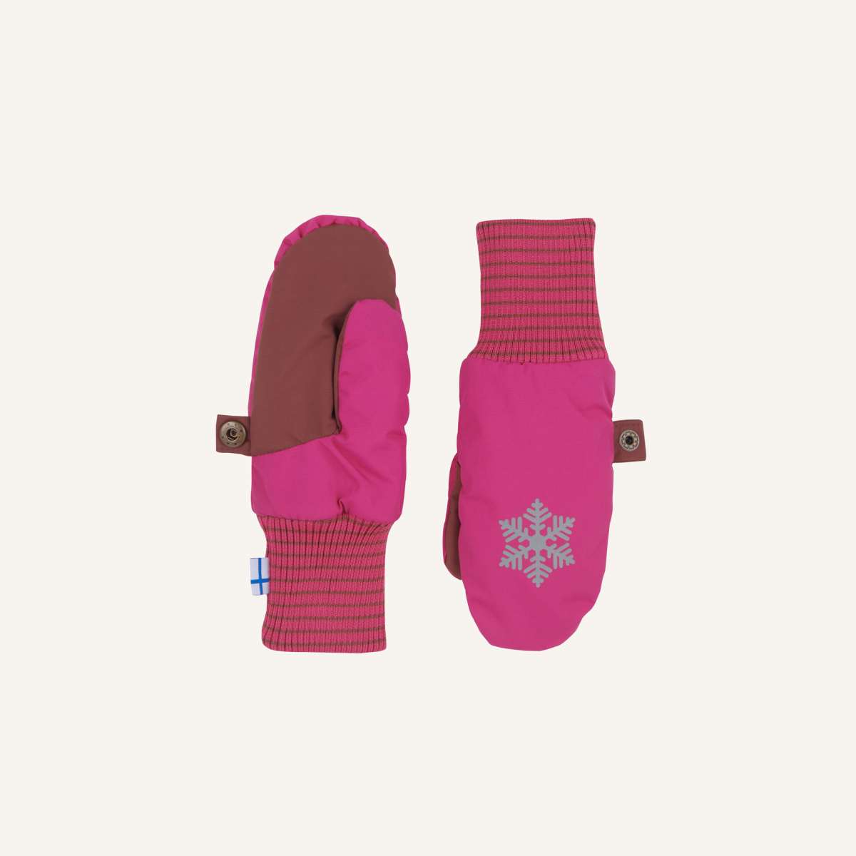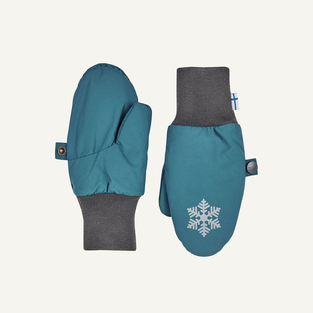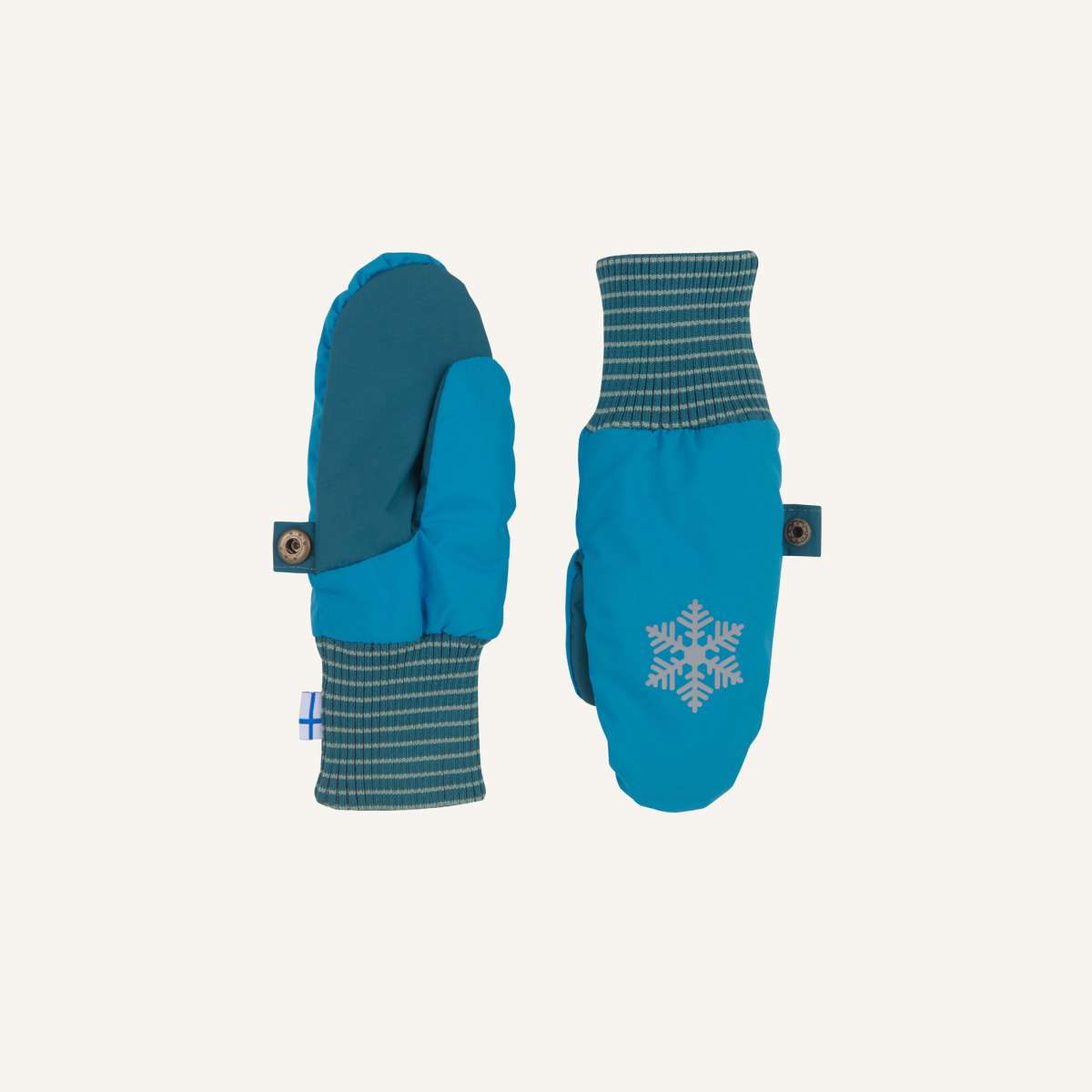 High Five für alle Winterkinder. Die Fäustlinge aus atmungsaktivem Material sind mit ihren versiegelten Nähten und dem wärmeisolierenden Material absolut winterfest. Kinderhände bleiben in diesen Wasser und Schmutz abweisenden Handschuhen auch bei kalten Temperaturen trocken und warm. Und weil Ordnung manchmal doch sein muss, lassen sich die beiden Fäustlinge durch einen Druckknopf einfach zusammen knöpfen.
