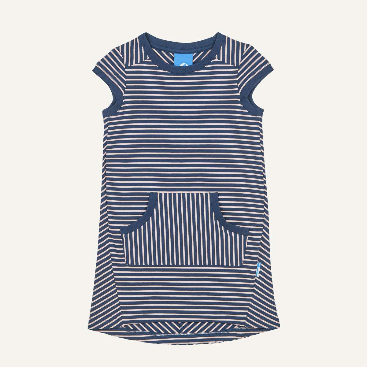 Kein Sommer ohne Kurzarmkleid. KEIDAS überzeugt schon optisch durch Biobaumwolle und seinen fröhlichen Streifenmix. Kinderhände oder Strandfundstücke finden in den beiden Einstecktaschen auf der Vorderseite Platz.