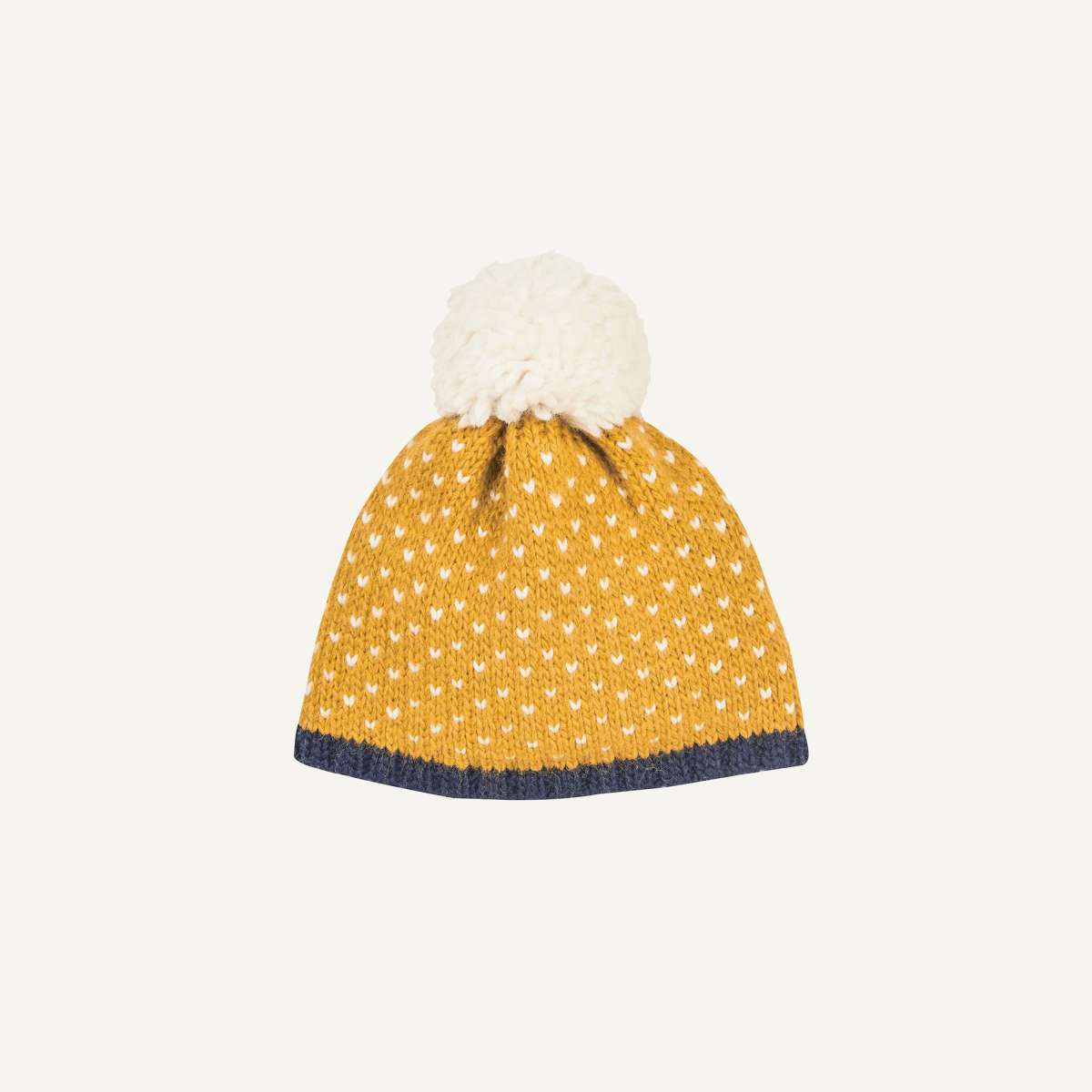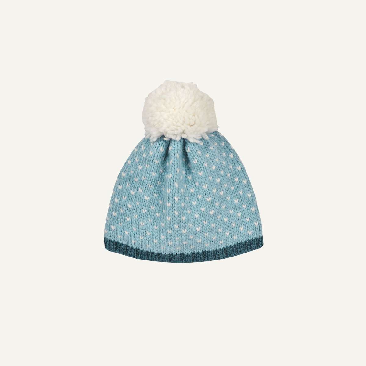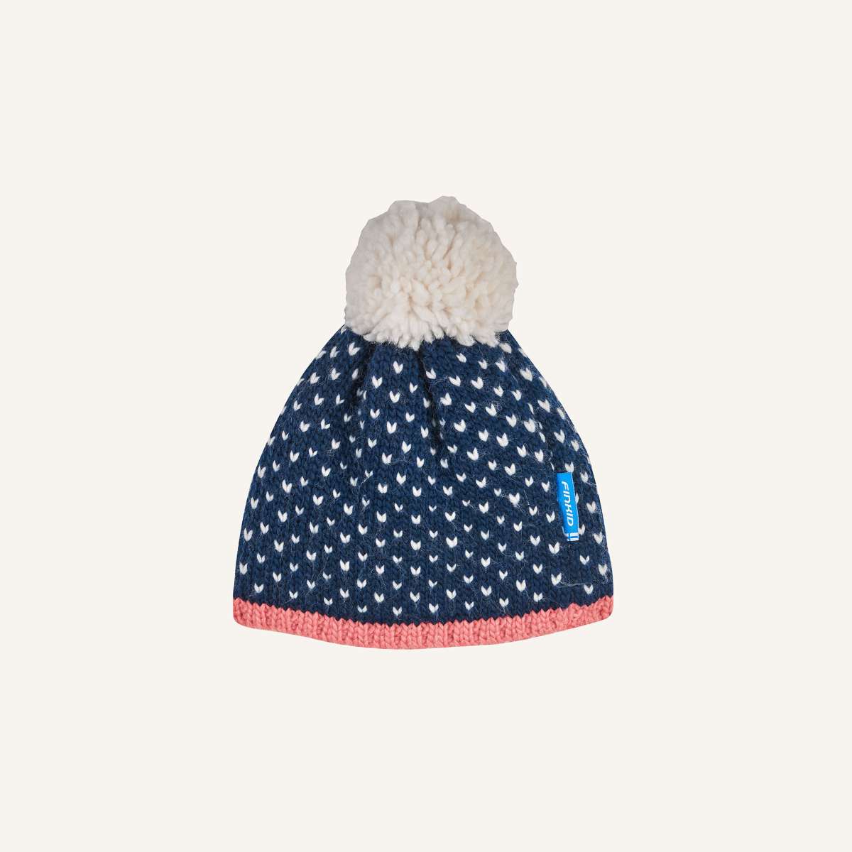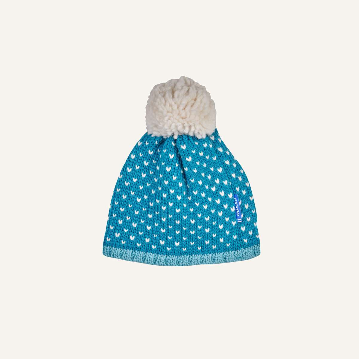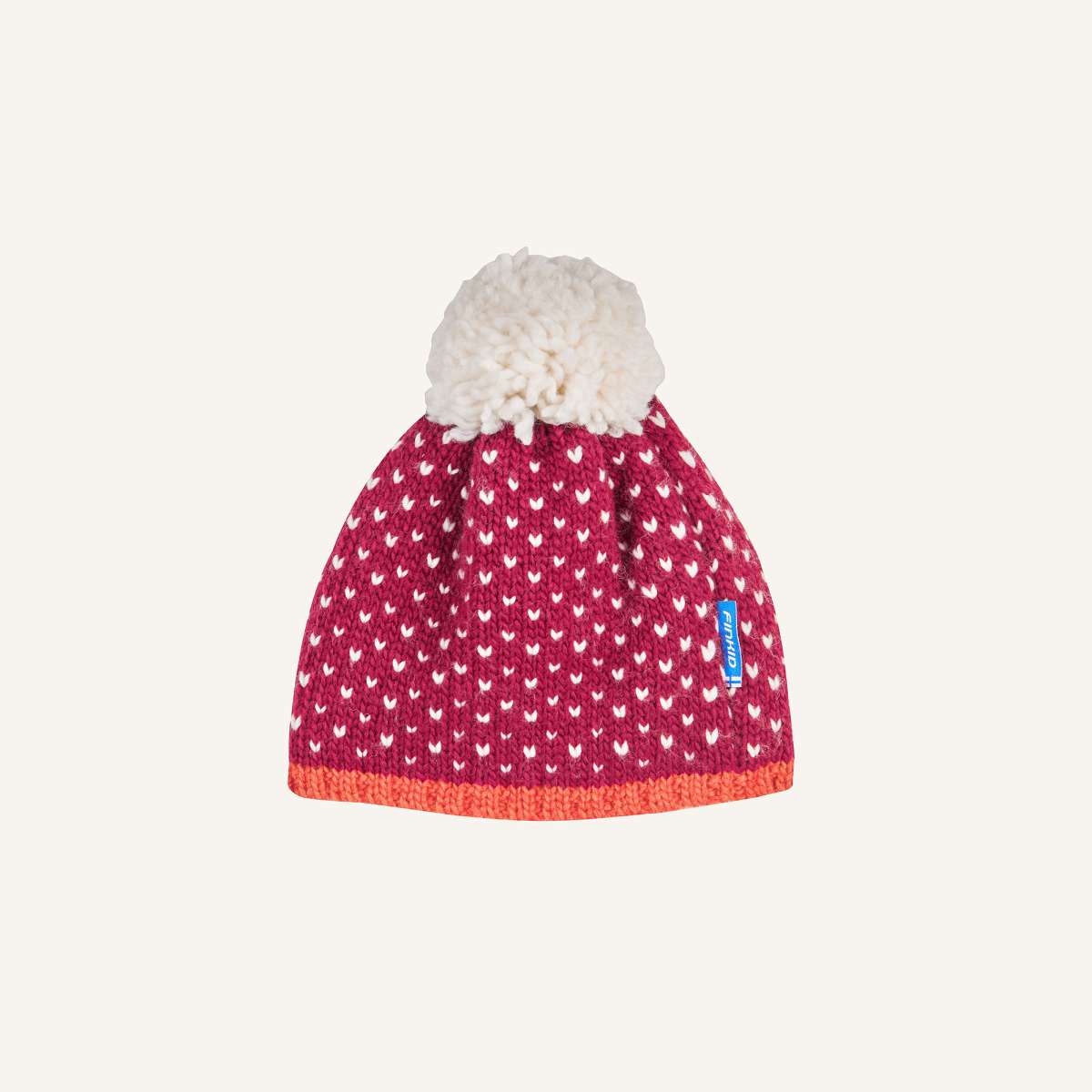 Komme, was wolle. Mit diesem Grobstrickbeanie mit Pünktchen und Bommel bleiben Kinderköpfe in jeder Situation angenehm warm. Der Oberstoff besteht aus 51 % Wolle, und trotzt Wind und Wetter wirkt das eingenähte Innenfutter zusätzlich wärmeisolierend. Der perfekte Begleiter durch die Wintermonate.