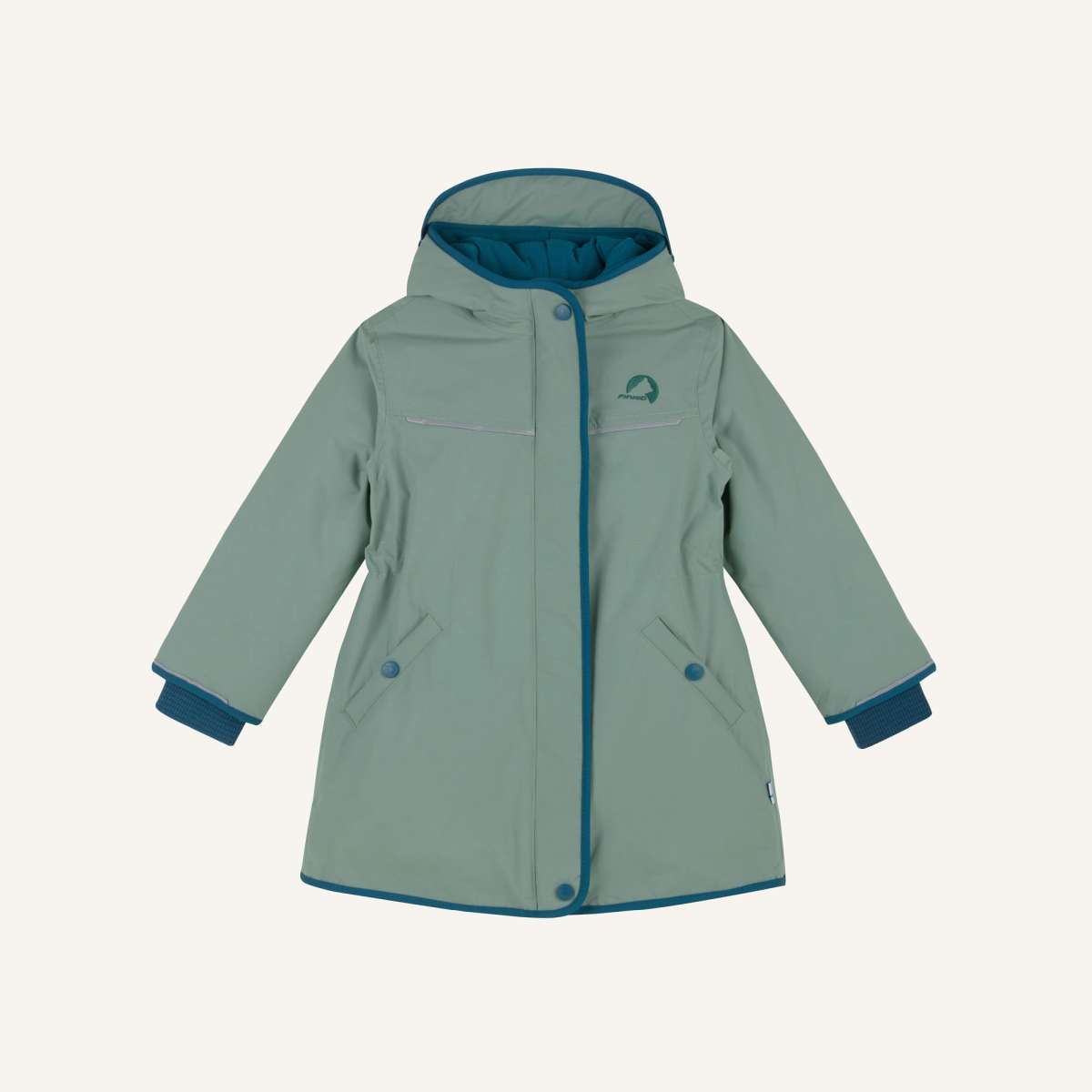 Wintermantel MILLA besticht durch den A-Linien-förmigen Schnitt, der sich mittels Gummizug in der Taille raffen lässt. Er ist etwas länger und bietet deinem finkid auch im Winter genügend Raum, um sich frei zu bewegen. Der Mantel ist nicht nur wohlig-warm gefüttert, sondern kommt auch mit kuscheligem Fleecestoff auf der Innenseite. Der kleine Schirm an der Kapuze sorgt zusätzlich für Komfort und ein trockenes Gesicht, auch wenn Regen oder Schnee fallen.