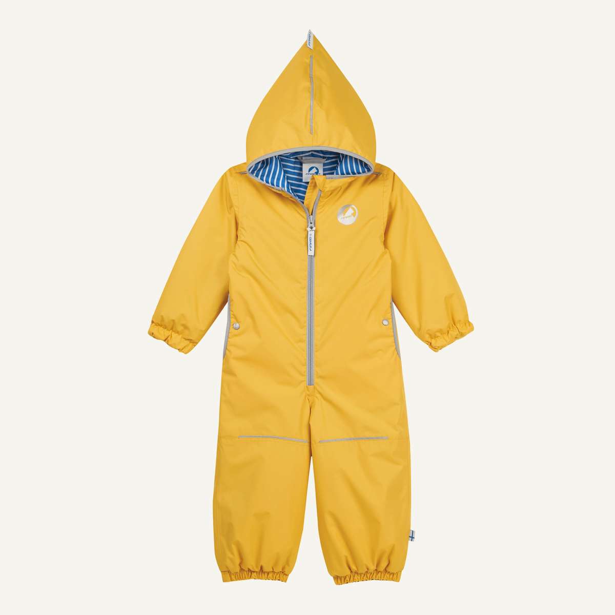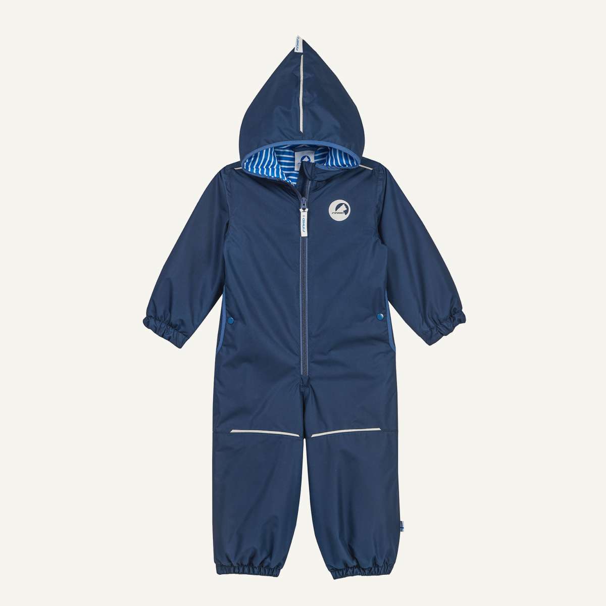 Alle an Deck Mädchen und Jungen zuerst! Dieser wetterfeste Overall lädt gerade dazu ein, dem Wetter zu trotzen. PIKKUMINI punktet durch wasserfestes, winddichtes Material mit versiegelten Nähten. Mit der leichten Wattierung ist der Overall außerdem wärmeisolierend und damit perfekt für kleine Seebärchen.
