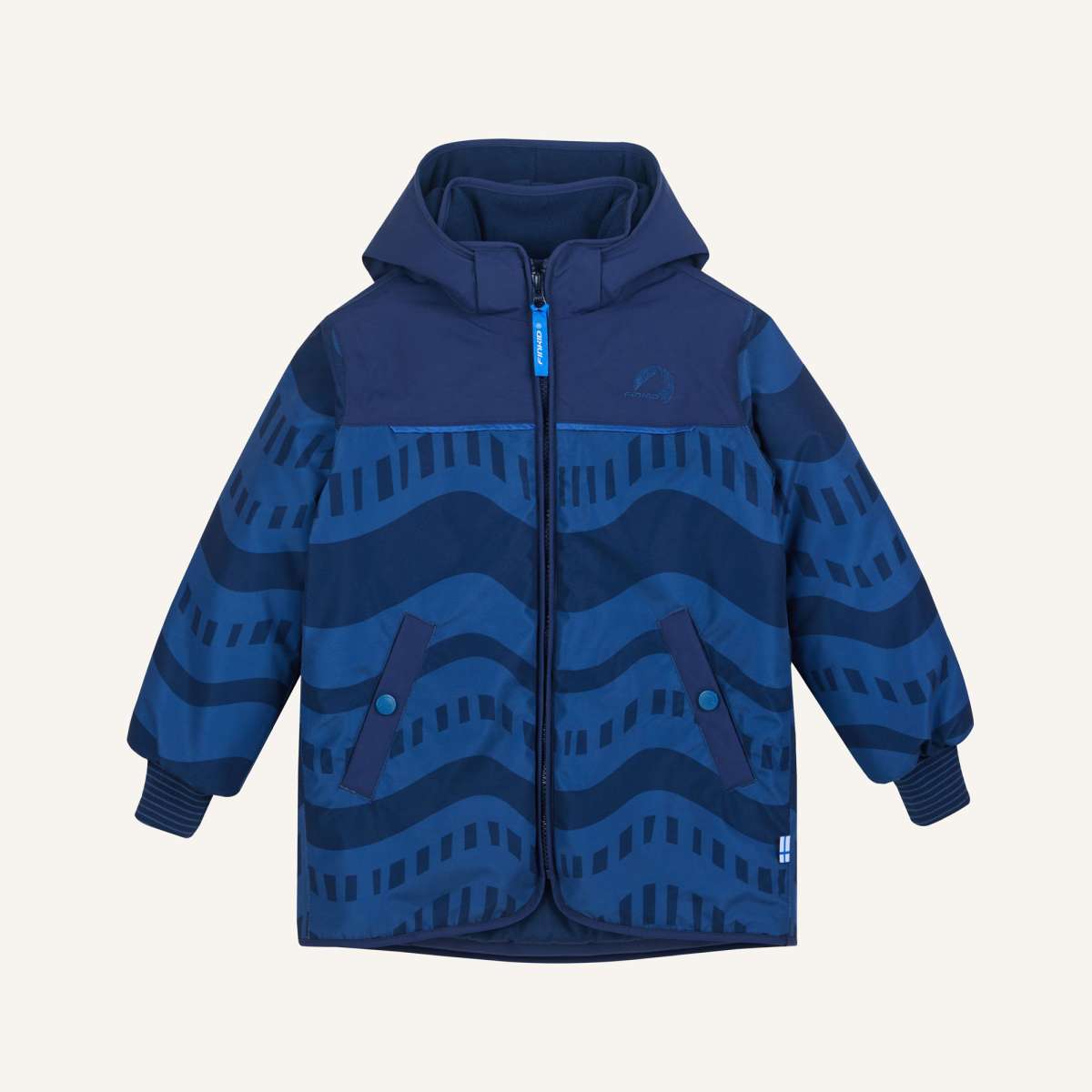 So kalt, dass der Atem dampft! Die weiche und warme finkid® Winterjacke KUVIO mit unserem Nordik Print bietet den modernen nordischen Stil gepaart mit optimalen Funktionen für die kalte Jahreszeit. Der Winterparka aus recycelten Materialien und abnehmbarer Kapuze ist wasserdicht, wärmeisolierend und atmungsaktiv – also rundum winterfest. Typisch finkid® ist die Zipfelkapuze von Größe 80/90 bis 110/120 für Kleinkinder. Von Größe 120/130 bis 140/150 kommt die Kapuze abgerundet. Weitere Highlights der Outdoor Kinderjacke sind versiegelte Nähte und reflektierende Elemente für die dunkle Jahreszeit und jede Menge Winterabenteuer. Wärmegrad 3: Dieses Modell ist extra warm gefüttert und hat besonders stark isolierende Eigenschaften bei sehr frostigen Temperaturen.