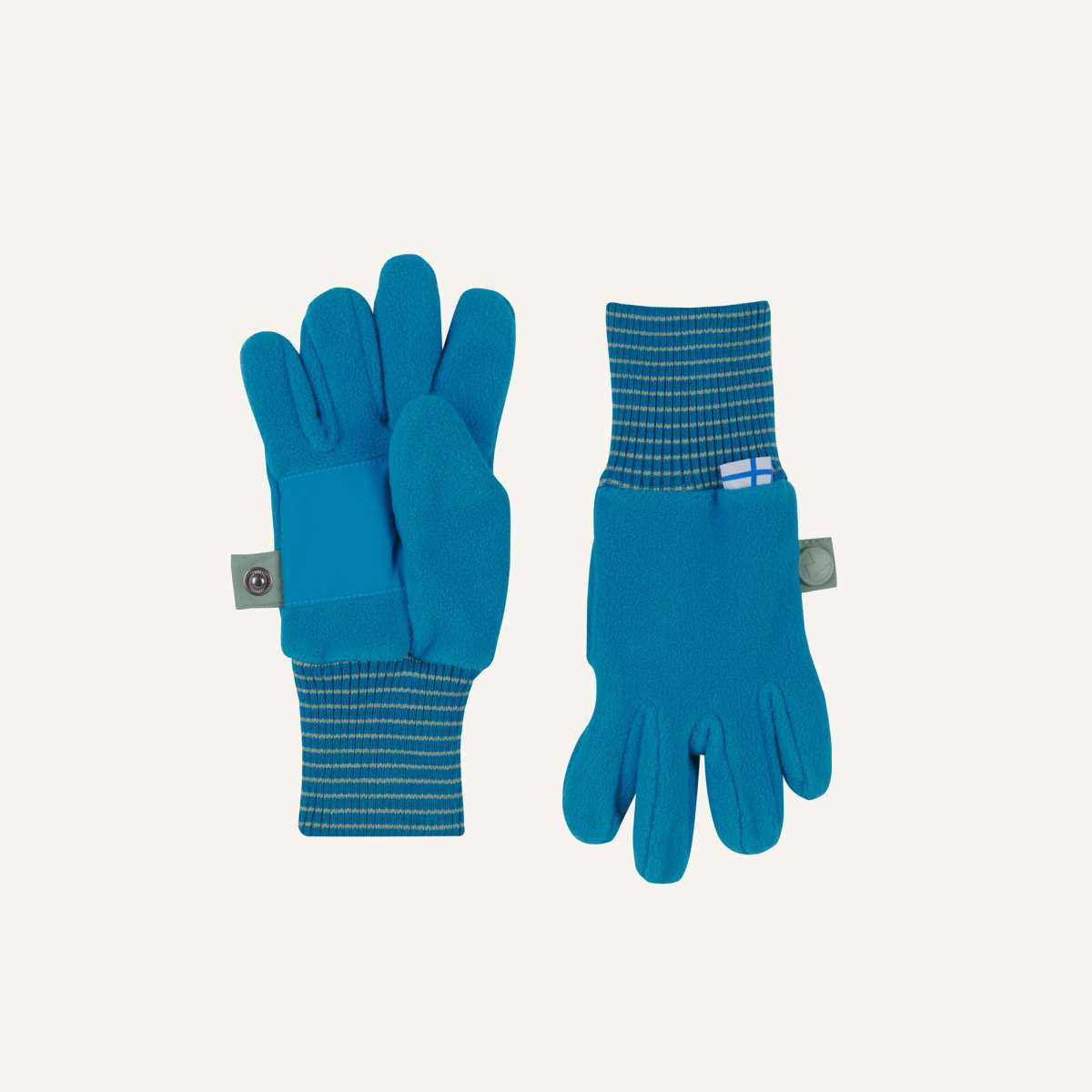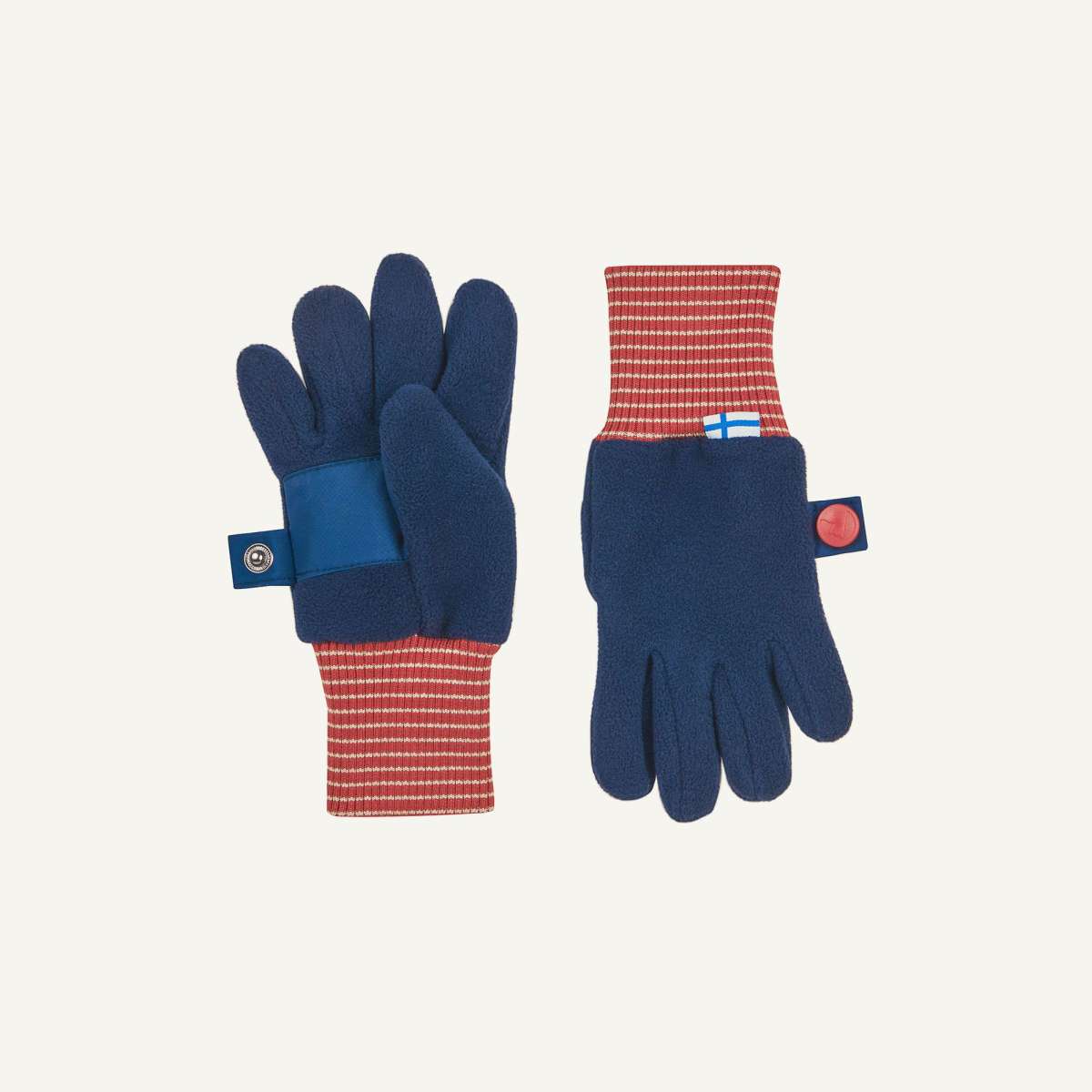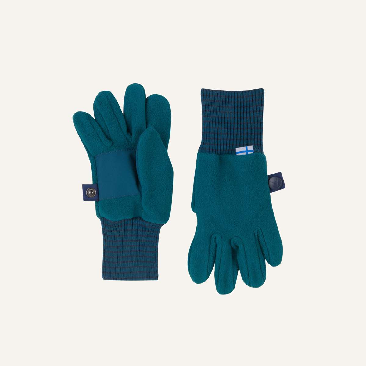 Weicher Fleece Fingerhandschuh mit wasserfestem Besatz auf der Handinnenfläche. Die elastischen Bündchen schmiegen den Handschuh am Arm an und sind leicht unter die Jackenärmel zu ziehen. So kann die Kälte kleinen Händen nichts anhaben.